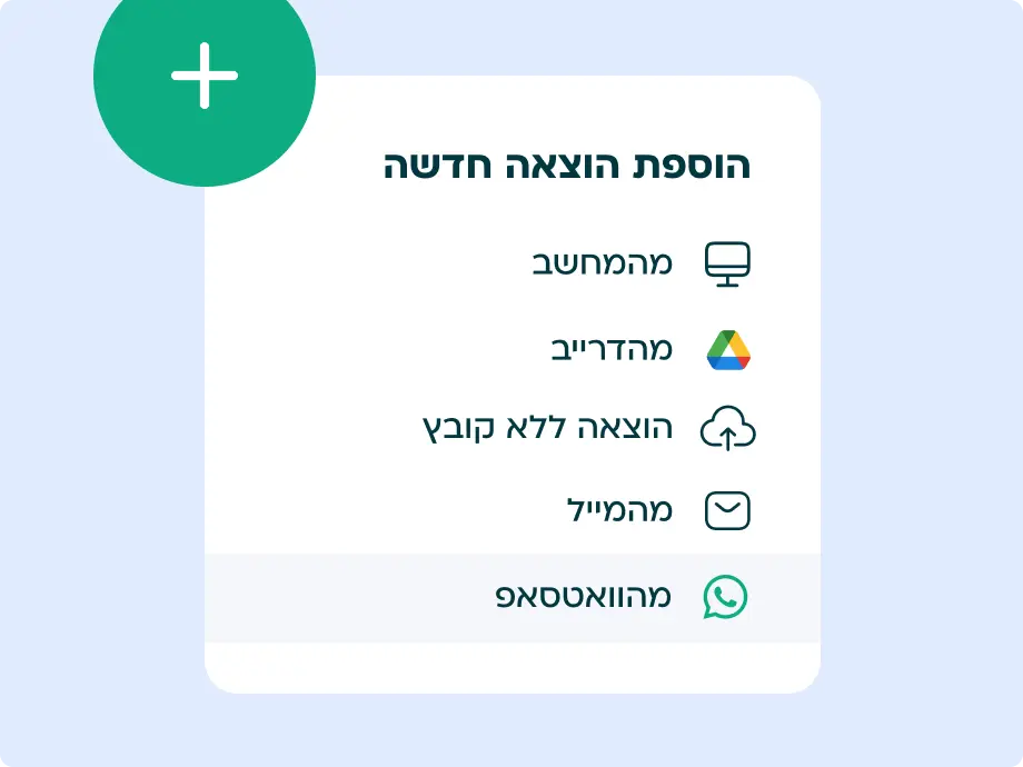 תענוג לנהל את העסק עם פתרונות שמציעים נוחות מקסימלית וגישה לביצוע פעולות חשובות מכל מקום: העלאת הוצאות מהירה, ניהול מכירות, הפקת דוחות לפי ספקים ולקוחות וגם חיבורים למערכות חיצוניות
