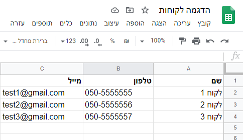 זה הגיליון שיצרתי לצורך ההדגמה:
